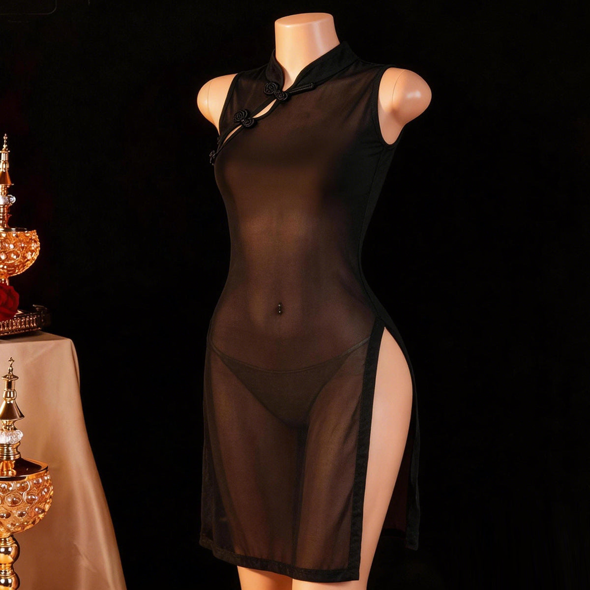 Turn heads with the NEATMOA sexy mesh see-through qipao lingerie set. Featuring a daring side slit, sheer mesh fabric, and traditional cheongsam-inspired design, this set combines elegance and seduction. Perfect for romantic nights, bedroom wear, or playful roleplay.